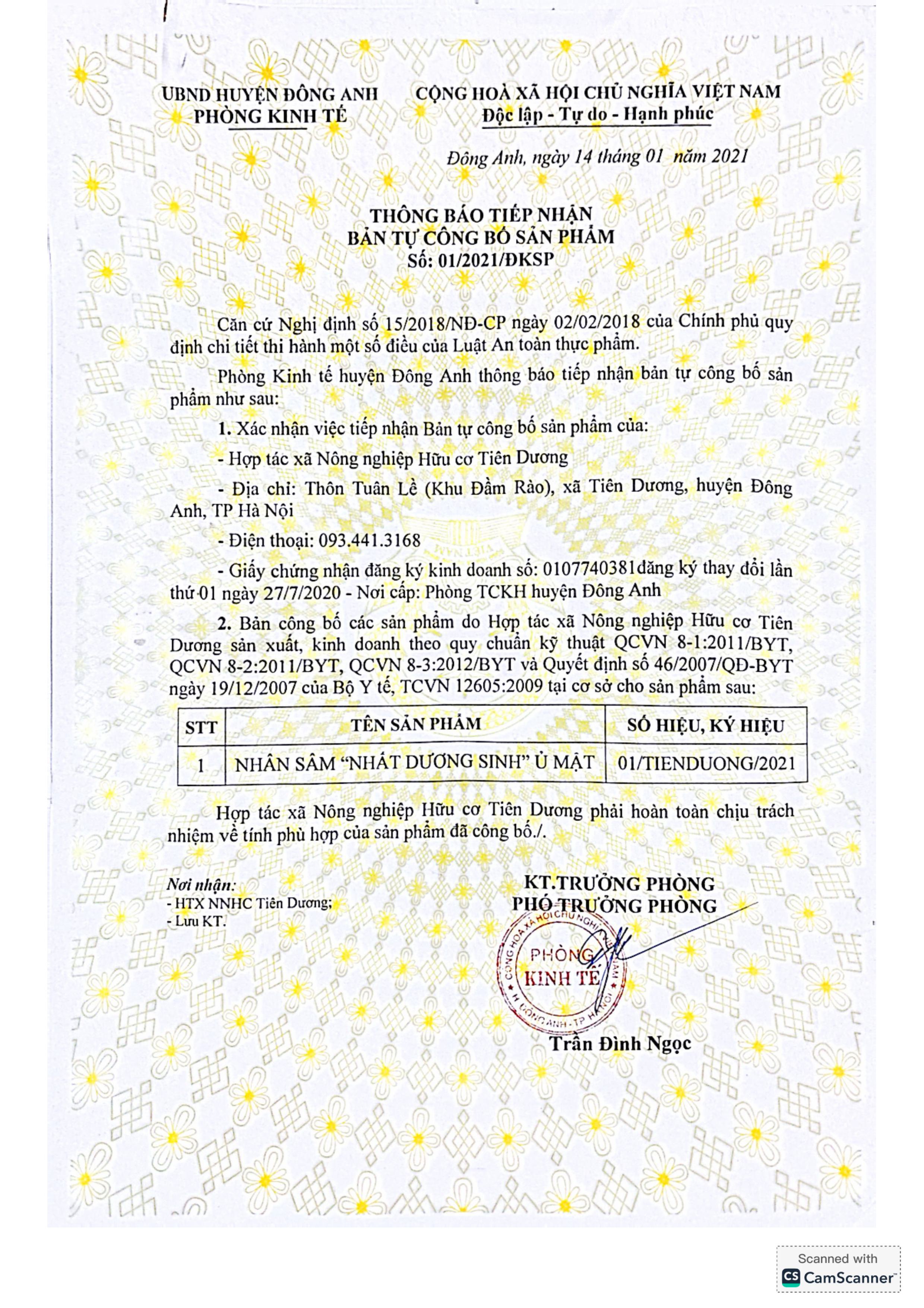 HỢP TÁC XÃ NÔNG NGHIỆP HỮU CƠ TIÊN DƯƠNG